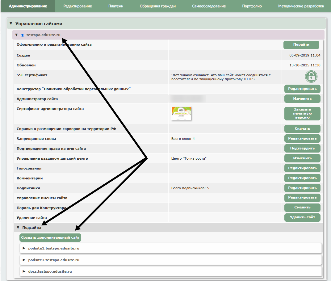 Лицензионный договор дает право вести один основной и до 30-и (или 50-и, зависит от выбранного пакета наших услуг) дополнительных сайтов, относящихся непосредственно к Вашей организации.