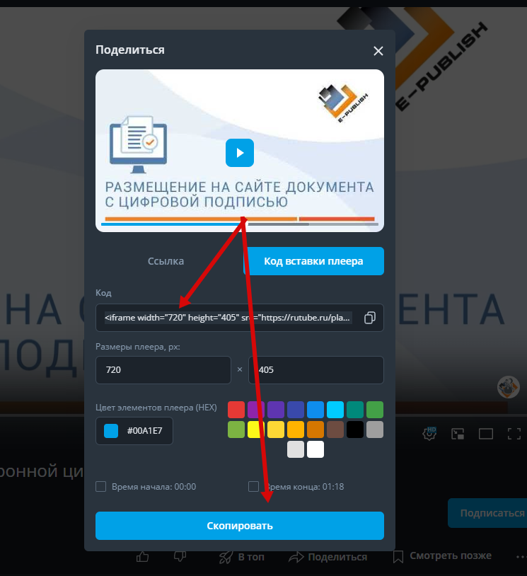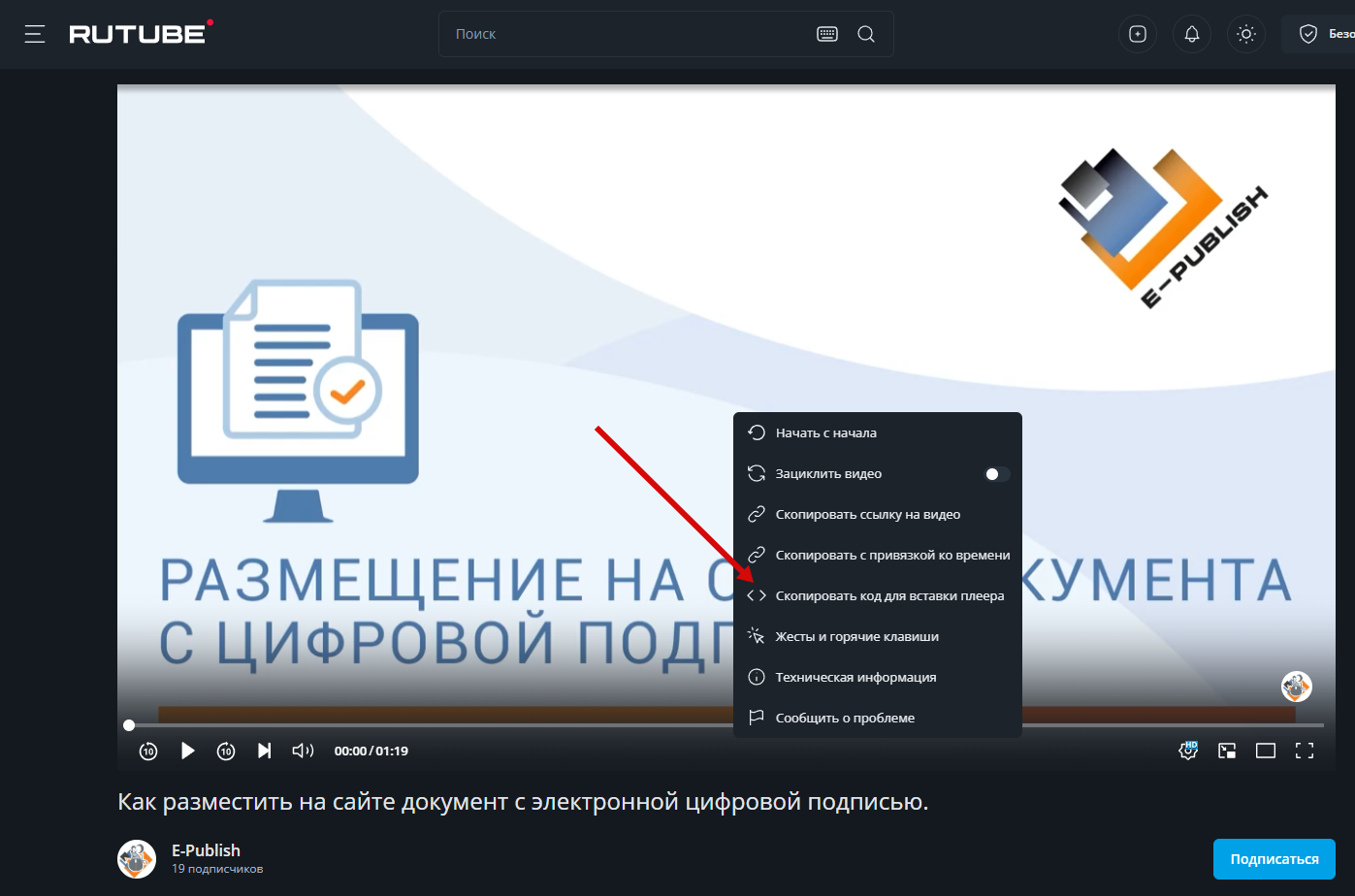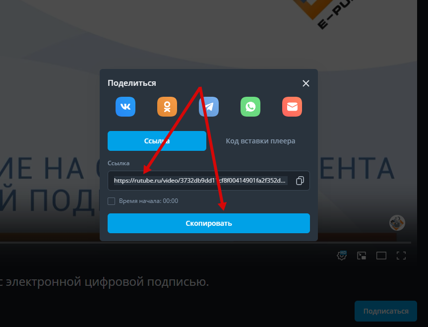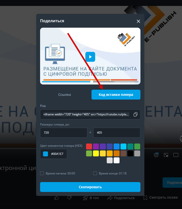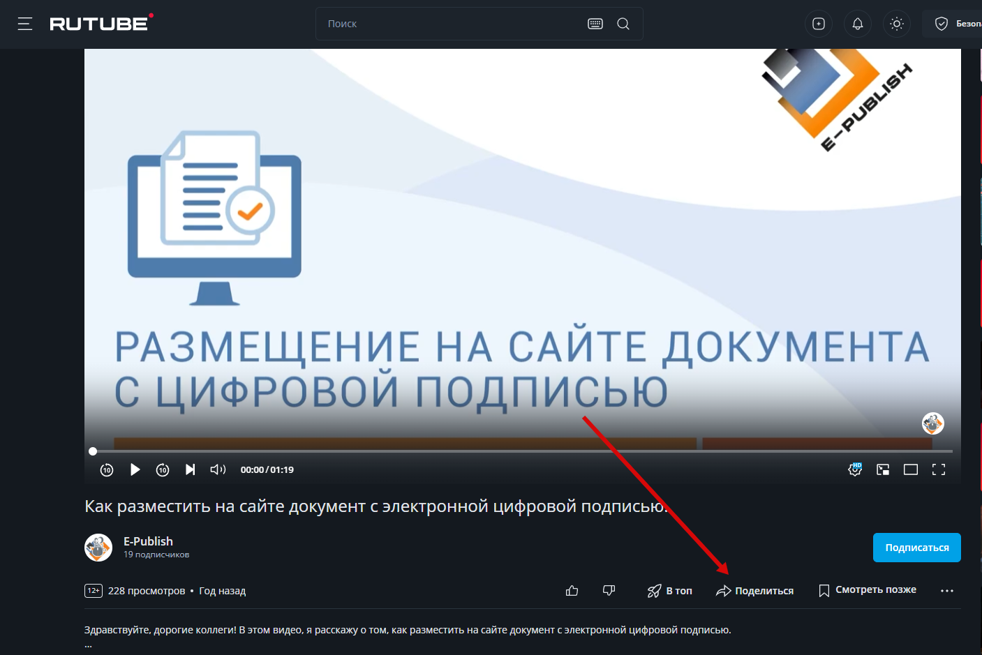 Для того, чтоб взять html-код видео, расположенного на на rutube, кликните, пожалуйста, кнопку "Поделиться"